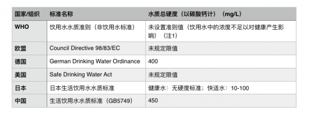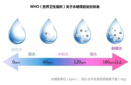 世界衛(wèi)生組織(WHO)沒有制定飲用水中硬度的基于健康的準(zhǔn)則值。對水硬度的公眾可接受程度各社區(qū)間可能有很大差別,取決于當(dāng)?shù)貤l件,特別是是消費(fèi)者是否注意到硬度的變化。我國《生活飲用水衛(wèi)生標(biāo)準(zhǔn)》規(guī)定生活飲用水總硬度(以CaCO3計(jì),mg/L)不超過450mg/L。